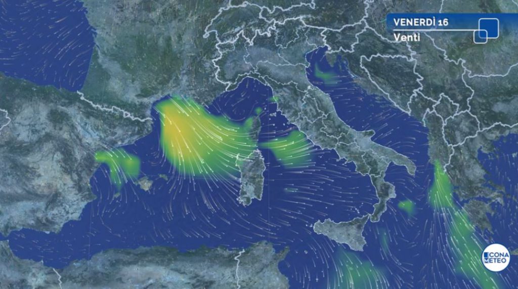 Temperature massime stazionarie o in lieve calo al Nord, in ulteriore lieve aumento altrove e superiori alla norma, con punte oltre i 25 gradi. Venti: da moderati a tesi di Scirocco su mar Ligure, Tirreno settentrionale e occidentale, intorno alla Sardegna e nel Canale di Sicilia, dove i mari saranno da mossi a localmente molto mossi. Altrove venti deboli e mari calmi o poco mossi.