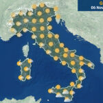 Le previsioni meteo per l’Italia di oggi, giovedì 6 novembre, indicano una situazione di prevalente stabilità atmosferica su gran parte del Paese. L’alta pressione continua a garantire condizioni di tempo asciutto e cieli generalmente sereni o poco nuvolosi, salvo il transito di velature e qualche addensamento localizzato. La giornata è caratterizzata da temperature miti per il periodo, con valori massimi sopra la media stagionale, soprattutto nelle aree più soleggiate del Nord, sulle isole maggiori e lungo il versante tirrenico.