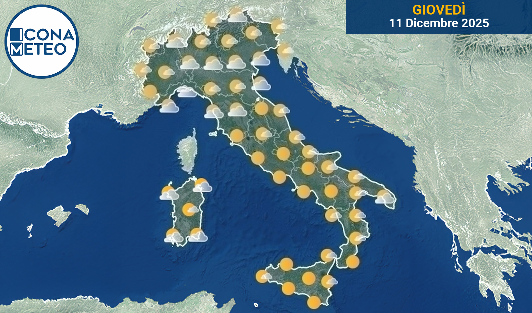 Domani, al Nord nuvoloso con pioviggini isolate, al Centro nebbie e addensamenti, mentre al Sud cielo sereno e soleggiato con qualche addensamento.