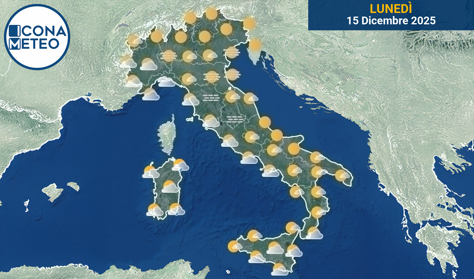 Cielo sereno o poco nuvoloso ma con presenza di nebbie localmente anche dense fra il basso e l’Emilia Romagna. Temperature minime senza variazioni rilevanti.Nebbie in sollevamento sotto forma di strati di nuvole basse, schiarite inizialmente ancora ampie altrove ma con tendenza poi ad un primo aumento delle nuvole in serata. Temperature massime in calo di 1-3 gradi. Venti deboli o assenti. Mare Adriatico calmo.