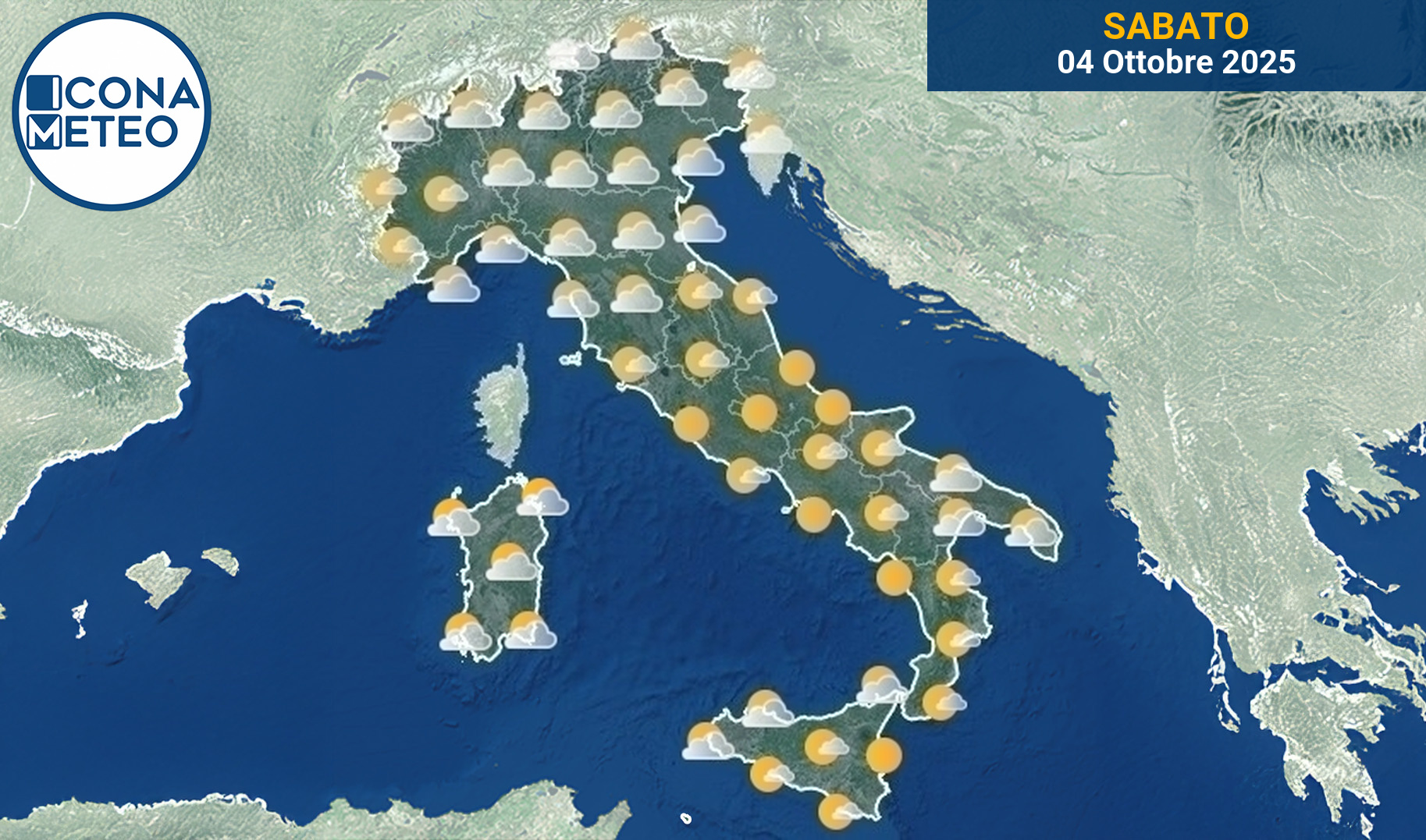 Oggi in Italia cieli parzialmente nuvolosi al Nord con piogge isolate, soleggiato al Centro e poco nuvoloso al Sud, temperature in aumento.