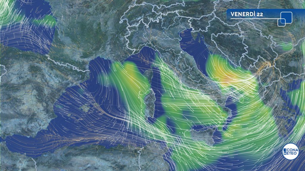 Le temperature caleranno in modo sensibile su tutto il nostro Paese con valori anche sotto le medie stagionali. Massima attenzione anche al vento che fino a venerdì si farà sentire su molte regioni con rischio di forti raffiche e mareggiate sulle coste tirreniche. Le raffiche potrebbero addirittura superare i 100 km/h.