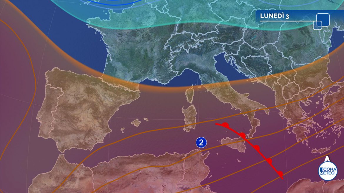 Dal Nord Africa nel frattempo si farà strada una debole perturbazione, la seconda del mese di maggio: nel corso della mattinata qualche pioggia raggiungerà dapprima la Sicilia, successivamente anche la Calabria e, più marginalmente, il sud della Sardegna.