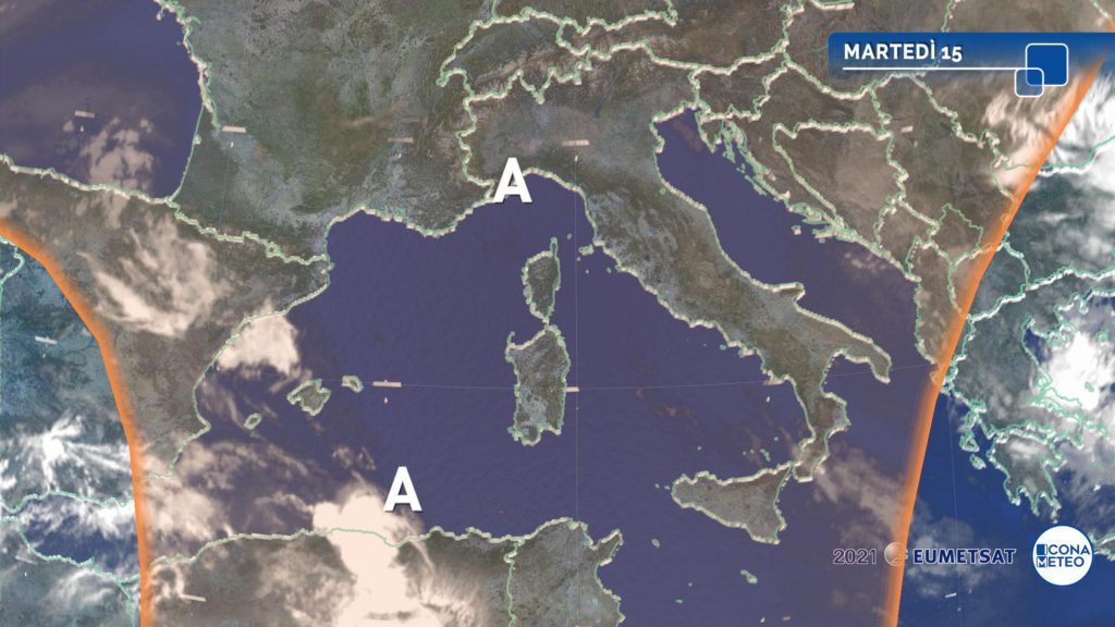 In tutte le regioni tempo generalmente soleggiato, con prevalenza di cielo sereno. Da segnalare qualche addensamento nuvoloso al mattino al Nord-Ovest, sulle Prealpi orientali, in Friuli e sulla bassa Calabria. Nel pomeriggio temporanei e locali annuvolamenti a ridosso dei rilievi, in particolare nelle Alpi occidentali, sull’Appennino ligure ed emiliano, in Calabria e nell’est della Sicilia ma con basso rischio di eventuali rovesci, più probabili nelle Alpi Marittime.