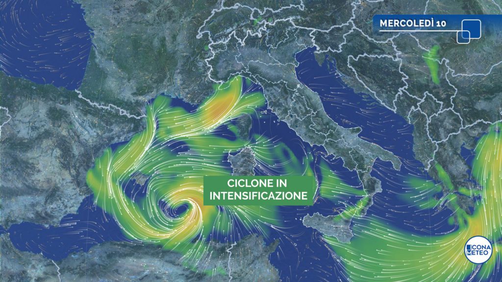 CICLONE in intensificazione: FORTI venti con rischio piogge e TEMPORALI