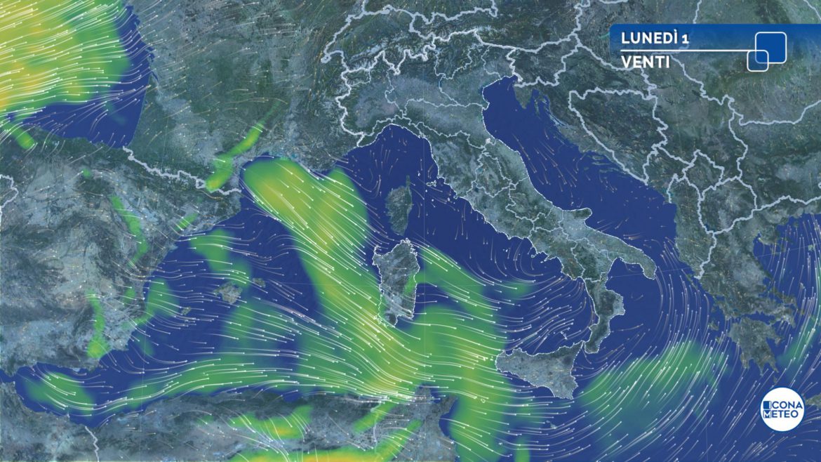 Venti: per lo più deboli sulle regioni centro-settentrionali; da moderati a tesi occidentali sulle Isole e all’estremo Sud. Mari: molto mossi o agitati il mare Ionio ed i mari attorno alle isole; molto mosso il settore centro meridionale del mar Tirreno; poco mosso l’Adriatico; poco mossi o al più mossi alto Tirreno e mar ligure.