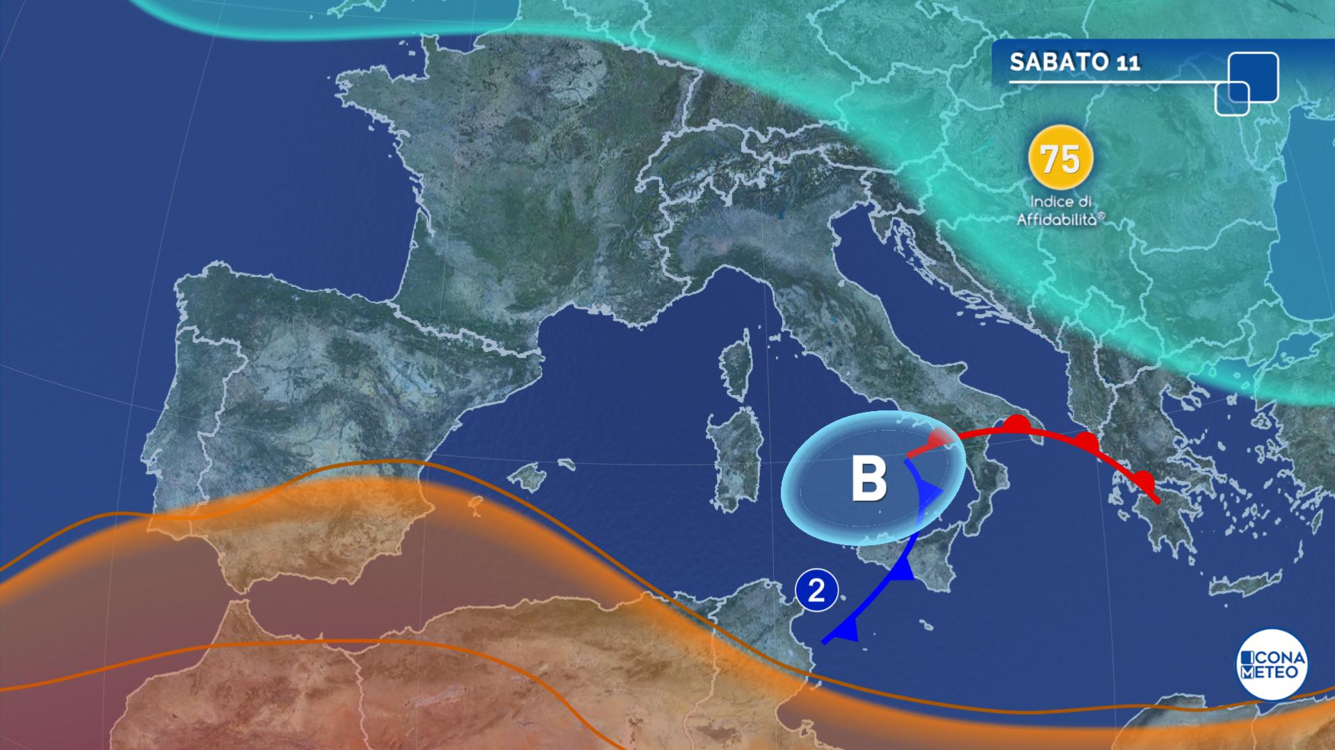 Sulle regioni meridionali e sulla Sicilia tempo molto instabile sin dalla mattinata: rovesci e temporali saranno più diffusi e frequenti nella seconda parte della giornata, con fenomeni localmente intensi soprattutto su Sicilia, Calabria, Basilicata e settori meridionali di Campania e Puglia. Sulle regioni centro-settentrionali e sulla Sardegna condizioni di maggiore variabilità, con una nuvolosità alternata a schiarite particolarmente ampie nel pomeriggio sulla valle padana, su Liguria, alto Adriatico e regioni centrali tirreniche. Nelle ore più calde possibilità di locali e brevi piogge o rovesci nel settore alpino centrale e nel sud-est della Sardegna.