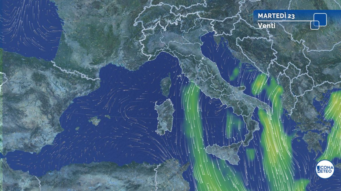 Temperature: minime in lieve rialzo al Nord e in Sardegna; massime in lieve rialzo in Sardegna, stazionarie o in lieve calo altrove. Insistono i venti settentrionali moderati o localmente forti al Centro-Sud e sulla Sicilia; venti deboli al Nord, venti in indebolimento sulla Sardegna.