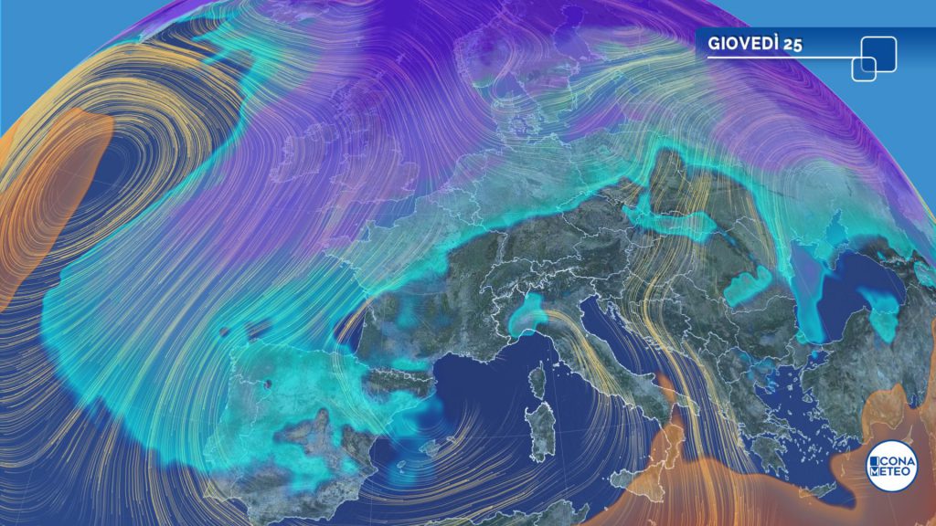 Meteo per domani, venerdì 26 novembre: perturbazione in allontanamento verso est seguita da forti venti di Libeccio e ancora da alcune precipitazioni sui settori occidentali, in Sardegna e all’estremo Nord-Est