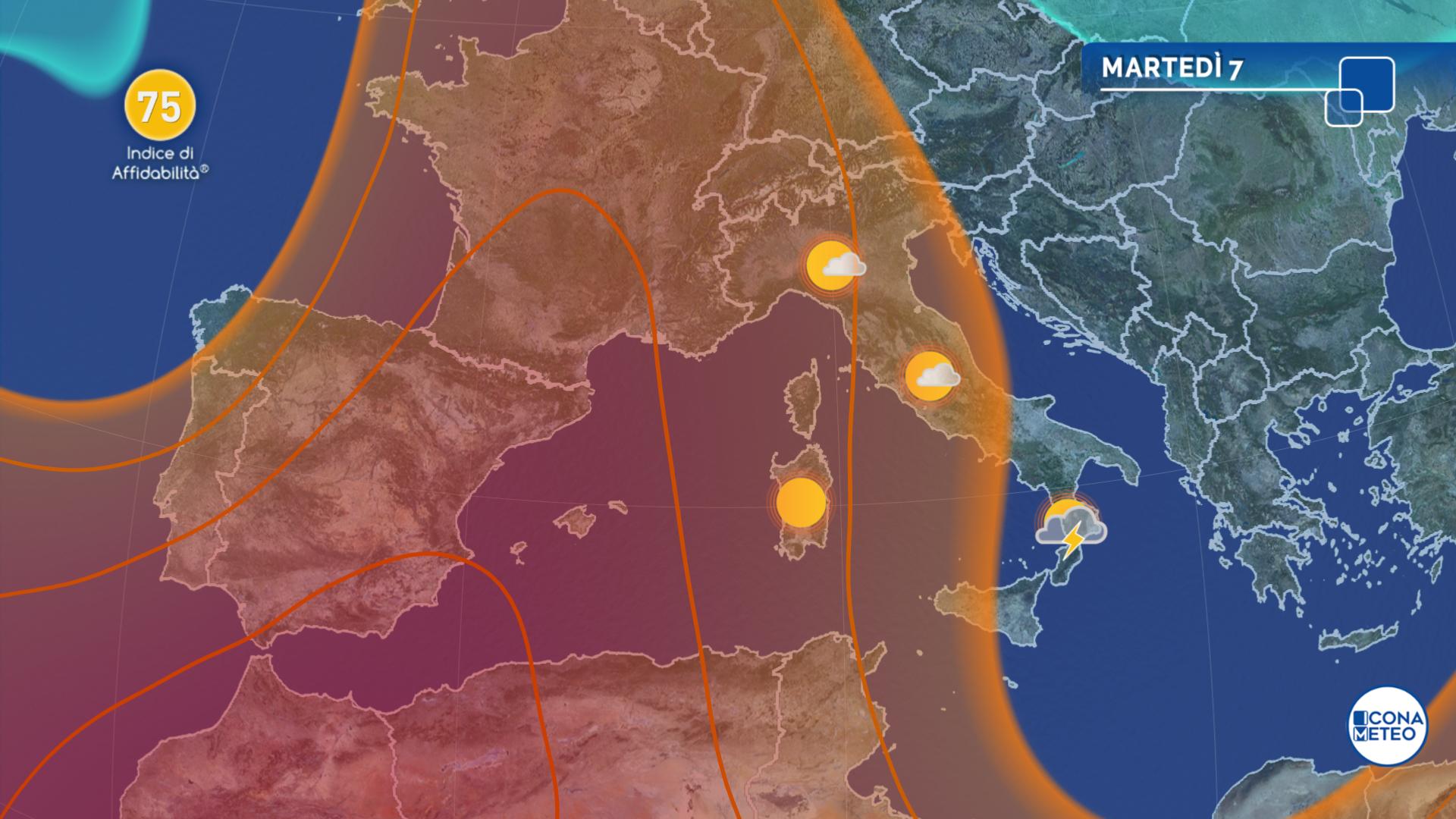 Al Sud e in Sicilia condizioni di instabilità con un po’ di nuvolosità variabile e la possibilità di locali rovesci o temporali inizialmente su Puglia meridionale, Calabria e Sicilia orientale, nel pomeriggio anche su Basilicata e rilievi campani. Nel resto d’Italia tempo più stabile e soleggiato, anche se non mancherà qualche annuvolamento al Nord, in Sardegna e sull’Appennino centrale ma con scarso rischio di precipitazioni.