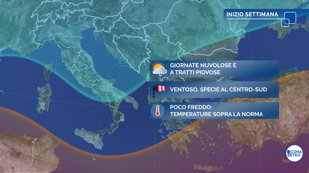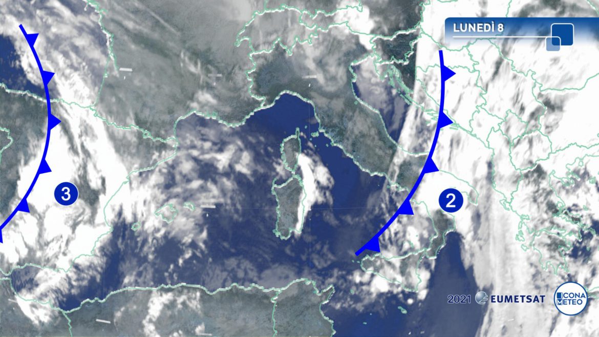 Inizio di settimana meteorologicamente movimentato sull'Italia, che si prepara al rapido susseguirsi di due perturbazioni