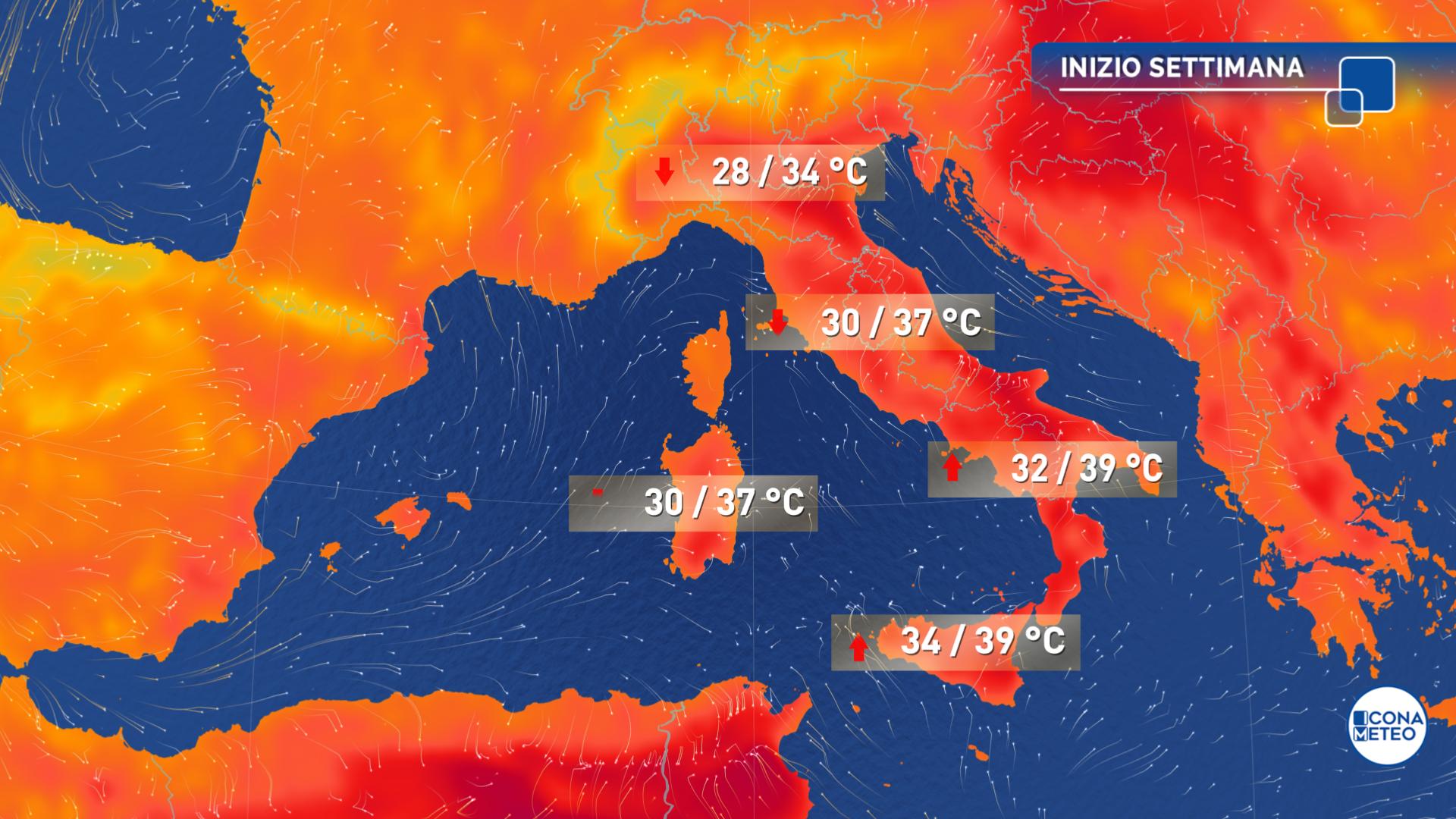 Anche per la giornata di martedì, stesso copione meteo: instabilità sulle alpi centro-occidentali con rovesci e temporali anche su parte della pianura piemontese. Tempo ancora stabile e abbastanza soleggiato nel resto del Paese con temperature in ulteriore lieve aumento al Sud e sulla Sicilia, fino a picchi vicini ai 40 gradi nelle aree interne e sulla parte orientale dell’isola; quasi stazionarie altrove, punte intorno ai 35 gradi al Centro e in Emilia Romagna.