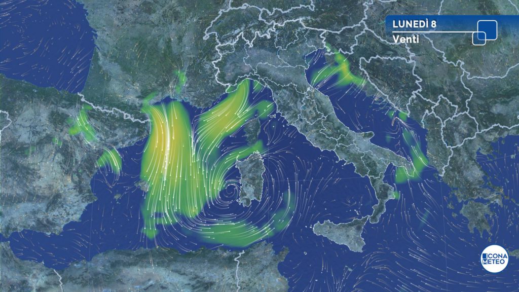 Le condizioni meteo di questo inizio settimana restano condizionate dalla vicinanza di un vortice ciclonico, che lunedì si avvicinerà alla Sardegna. Al contempo la coda di una perturbazione provocherà un aumento dell’instabilità al Nord e sulle regioni adriatiche. La giornata di lunedì sarà infatti piovosa in molte regioni.