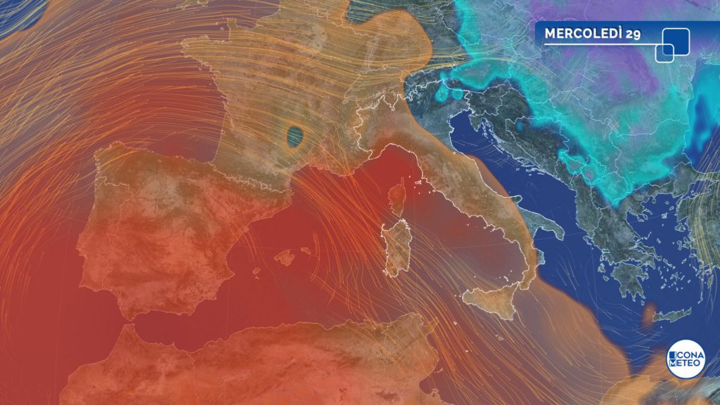 Venti: intenso Maestrale sulla Sardegna, sul mare di Sardegna, sui canali di Sicilia e di Sardegna; moderato Maestrale sulla Sicilia e sul Canale d’Otranto; nella seconda parte della giornata Foehn nelle valli alpine occidentali. Venti deboli altrove.