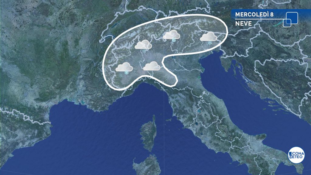 Meteo per le prossime ore: maltempo invernale nella Festa dell’Immacolata con neve fino in pianura al Nord-Ovest e in parte dell’Emilia; temporali intensi al Centro-Sud