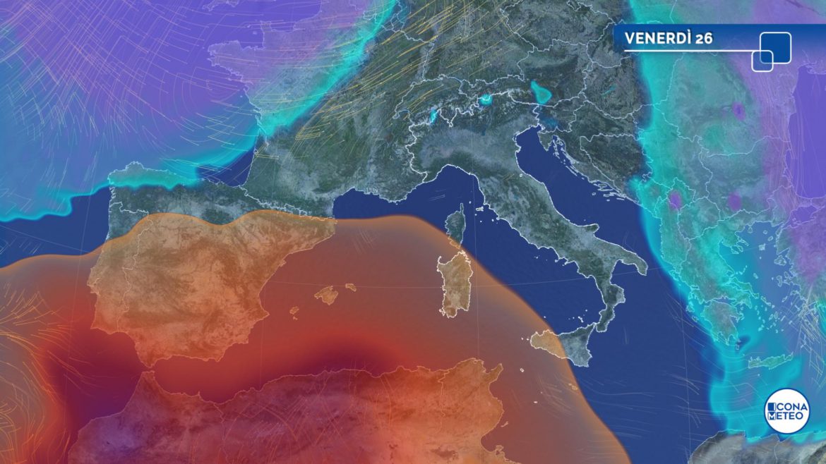 Su tutte le regioni nuvolosità variabile, in prevalenza di tipo medio-alto, con maggiore opportunità di aperture all’estremo Sud e sulla Sicilia e, dal pomeriggio, anche su Valle d’Aosta e ovest del Piemonte.
