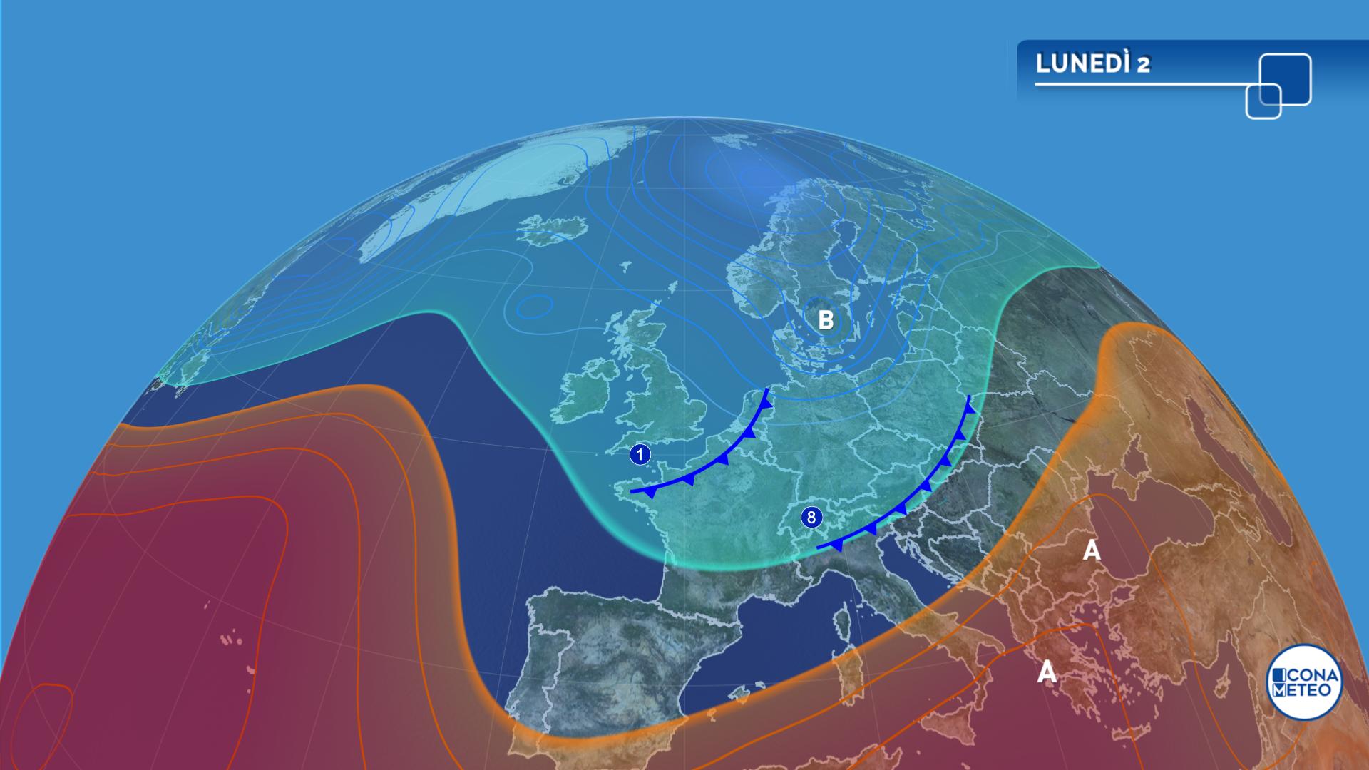 Il maltempo concede una tregua alle regioni del Nord in questo lunedì 2 agosto, ma per pochissimo tempo. Tra domani e mercoledì, infatti, due nuove perturbazioni (n.1 e 2 del mese) in rapida successione daranno vita ad altre fasi di maltempo con temporali che, tra mercoledì e giovedì, coinvolgeranno anche le regioni centrali.