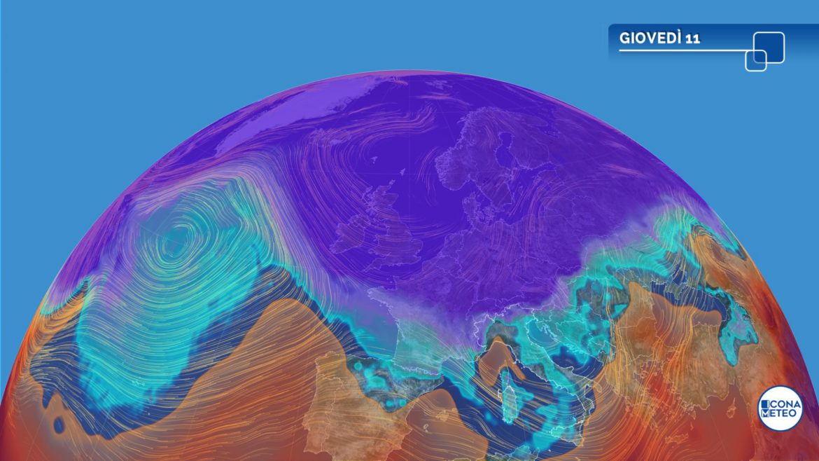 Temperature minime in calo al Centro-Nord e in Sardegna, ma con gelate solo nelle aree montuose; massime in rialzo al Nord-Ovest per effetto dei venti di Foehn. Venti da moderati a forti di Maestrale su Tirreno, Isole e al Sud, settentrionali sul medio Adriatico; ventoso anche sulle Alpi e vicine pianure; Bora in graduale rinforzo nel corso della giornata sull’alto Adriatico con ingresso a fine giornata di freddi venti orientali in Val Padana.