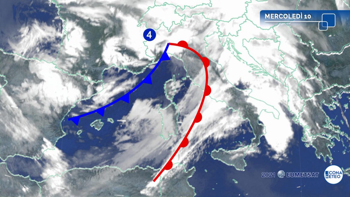 Nel pomeriggio il maltempo, con fenomeni anche sotto forma di rovesci o temporali, insiste principalmente all’estremo Nord-Est, in Sardegna e tra l’Umbria, il basso Lazio, la Campania e le vicine zone appenniniche. Fenomeni in attenuazione o esaurimento nel resto del Centro-Nord. Prime piogge anche su Lucania e nord della Puglia, in estensione in serata a gran parte del Sud, con possibili rovesci o temporali nel nordovest della Calabria e sulla Sicilia occidentale. In serata schiarite anche ampie al Nord-Ovest.