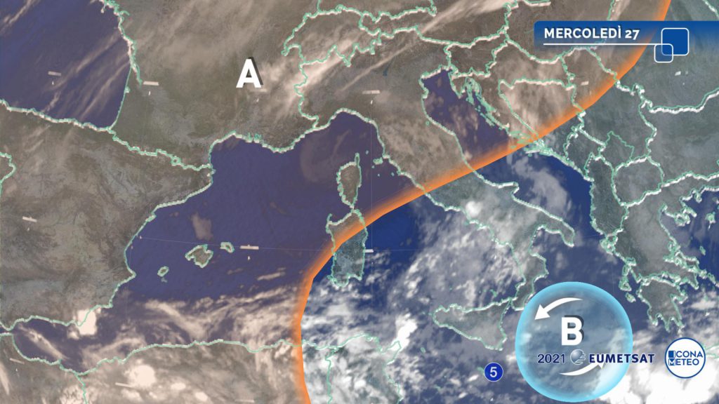 Cielo nuvoloso o molto nuvoloso nelle Isole, con piogge e rovesci a carattere isolato sulla Sicilia, specie nella parte occidentale dell’isola; in Sardegna qualche rovescio nel settore tirrenico, più probabile dalla sera. L’alta pressione mantiene condizioni più stabili altrove, con cielo sereno o poco nuvoloso al Nord, in Toscana e nelle Marche; dal pomeriggio ampi rasserenamenti anche nel resto del Centro e al Sud.