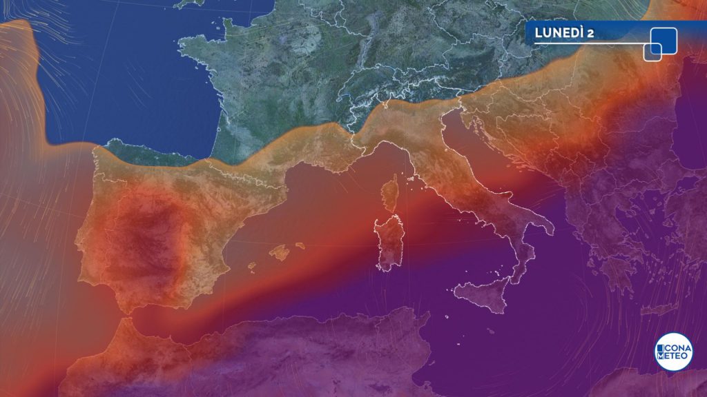 L’ondata di caldo si smorza parzialmente su parte del Centro e della Sardegna mentre prosegue inalterata al Sud e in Sicilia, anche a inizio settimana. Nella giornata di domani la calura sarà leggermente più sopportabile anche lungo l’Adriatico e il basso Tirreno. Nei giorni a seguire la scena meteo sarà sempre divisa tra caldo estremo e temporali (ne abbiamo parlato qui).
