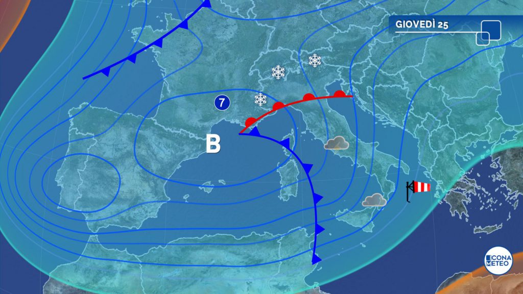 Il maltempo rimane in stand-by ancora per qualche ora sull’Italia, dove oggi sarà una giornata con tempo perlopiù soleggiato al Centro-Nord mentre al Sud e sulle Isole si avrà qualche residuo episodio piovoso. Tra la fine della giornata odierna e le prime ore di venerdì, un’intensa perturbazione (n.7) proveniente dalla Penisola Iberica darà vita a precipitazioni su tutte le regioni, con temporali particolarmente intensi su parte del Sud, sul Lazio ma anche sul settore ligure, in Toscana e al Nord-Est. La neve scenderà abbondante sulle alpi centro orientali mentre al Nord-Ovest interesserà anche le quote più basse, in particolare sul Piemonte e sull’Appennino ligure. Nel weekend altre due perturbazioni interesseranno il nostro Paese, con irruzione artica e brusco calo termico.