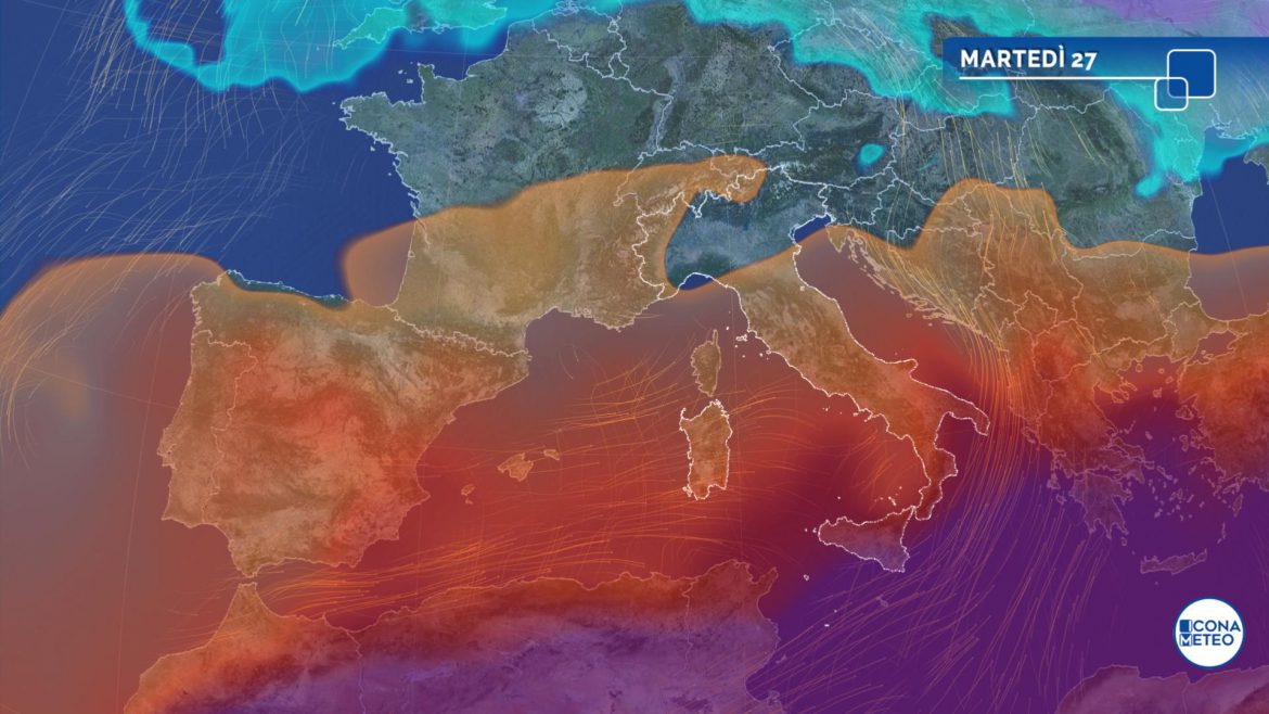 MARTEDÌ la scena meteo divide ancora l’Italia tra piogge e CALDO ESTIVO! I dettagli