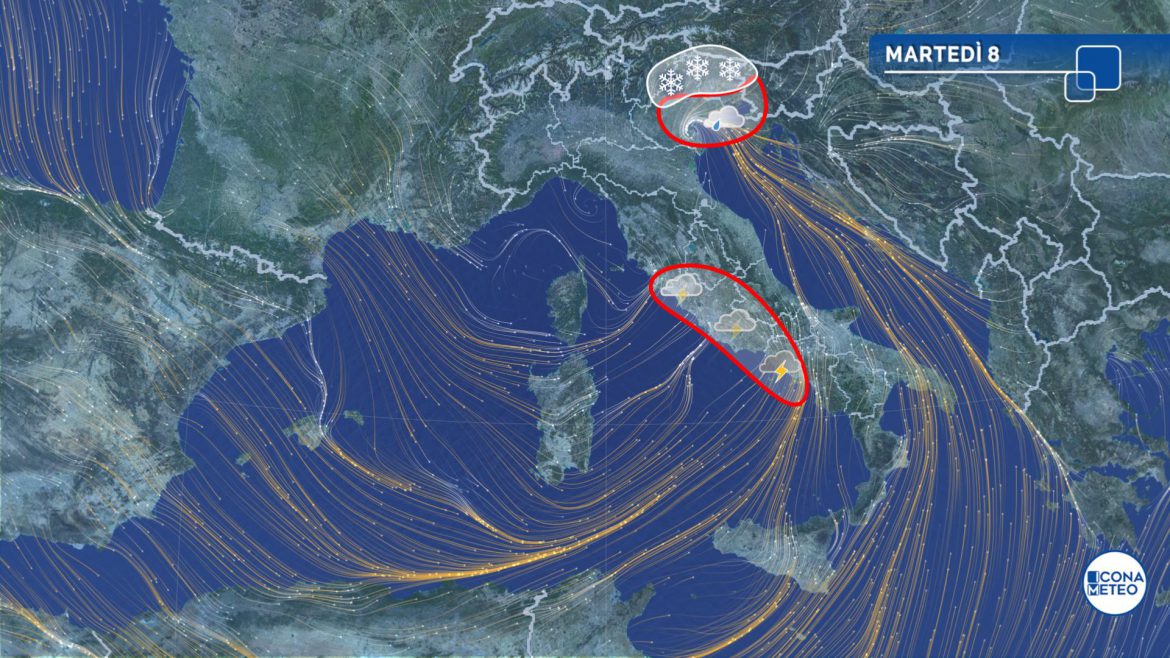 Mercoledì MALTEMPO in attenuazione, ma non ovunque: molto VENTO