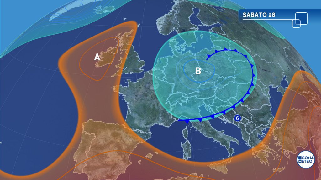 La scena meteo a partire da oggi vedrà un clima decisamente meno caldo da Nord a Sud grazie alla massa d’aria fresca che accompagna la perturbazione numero 6, affacciatasi ieri sul Nord-Est e che tra oggi e domani coinvolgerà alcune regioni del Centro-Nord, marginalmente anche quelle meridionali nella giornata di domenica. Tra sabato e domenica, dunque, si profila una notevole rinfrescata sulle regioni settentrionali, con valori anche inferiori alla norma.
