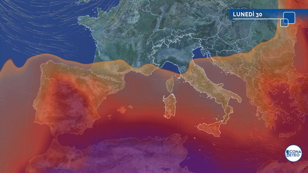 Temperature: minime all’alba in calo lungo il medio Adriatico, al Sud e sulla Sicilia; massime in rialzo al Nord e sulle regioni peninsulari, in ulteriore lieve flessione sulla Sicilia. Caldo ovunque nella norma, con valori generalmente compresi tra 25 e 30 gradi, poco oltre solo in Sicilia.