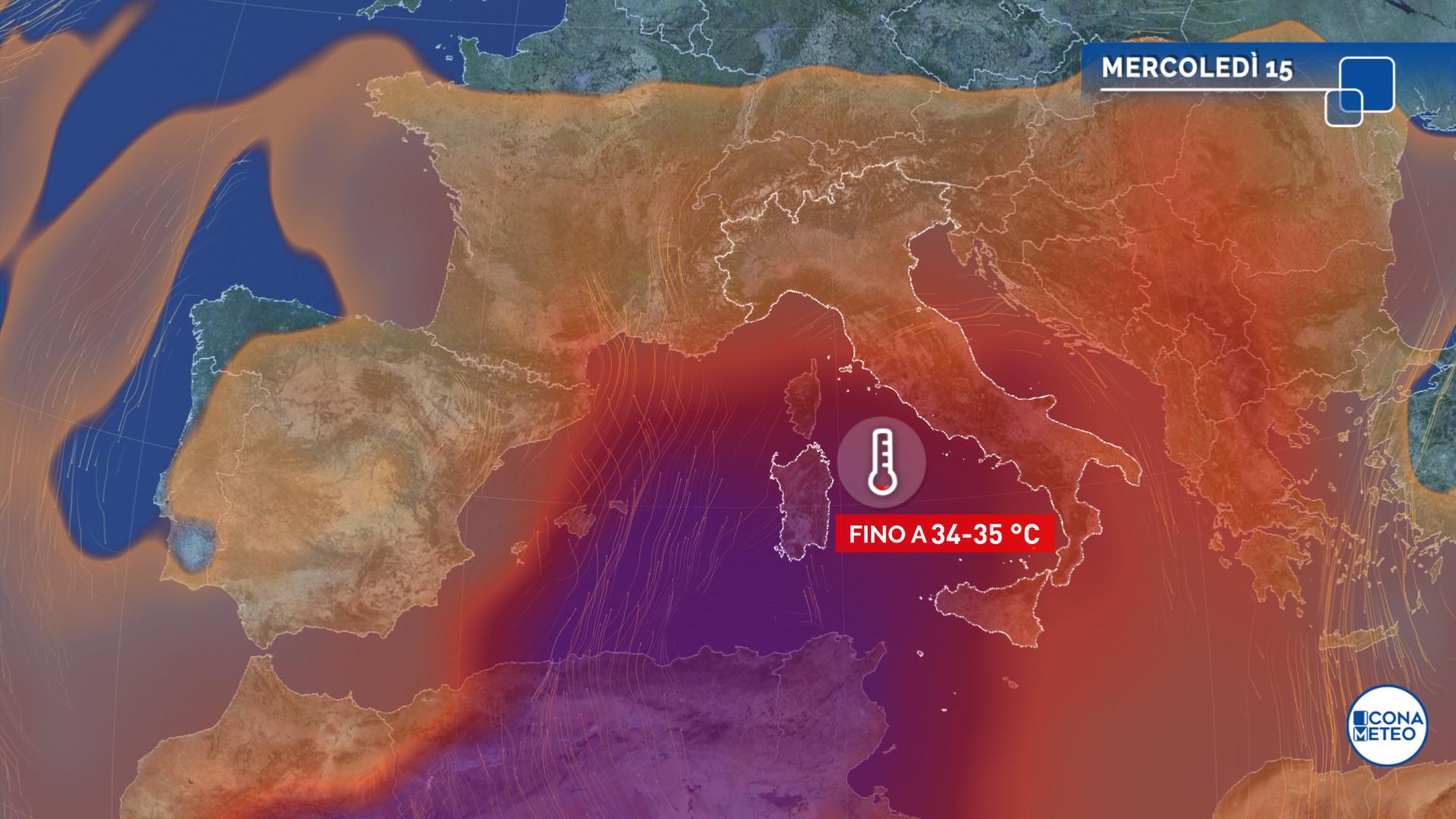 Temperature massime in lieve flessione al Nord, in Toscana e Umbria; in ulteriore aumento all’estremo Sud e sulle Isole. Caldo ovunque superiore alla norma, soprattutto in Sardegna dove si potranno raggiungere i 35 gradi. Altrove valori compresi tra 27 e 33 gradi.