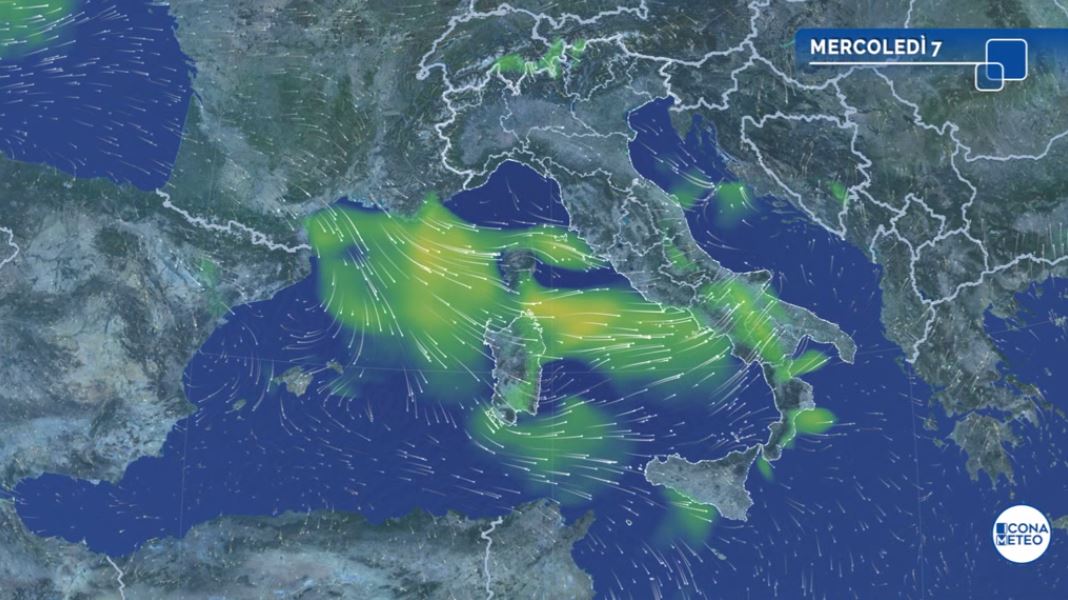 Venti sostenuti da ovest o nord-ovest al Centro-Nord e sulle Isole, di Libeccio al Sud; possibili raffiche fino a 60-70 km/h sui mari occidentali, nelle creste alpine e sulle cime dell’Appennino centro-meridionale. Episodi di Foehn al Nord-Ovest. Mari: poco mossi l’alto Adriatico e il basso Ionio sotto costa; mossi o localmente molto mossi gli altri mari.