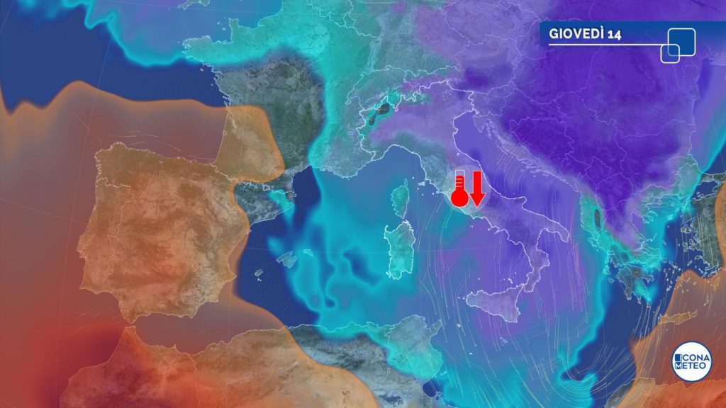 Il maltempo torna protagonista nelle regioni adriatiche, al Sud e in Sicilia. La perturbazione n.3 del mese darà vita a nuove piogge, venti intensi e un marcato calo termico con valori in generale al di sotto delle medie. Lo scarto sarà particolarmente evidente al Centro-Sud, dove tra giovedì e venerdì si potrebbero avere fino a 6-8 gradi in meno rispetto alla norma. Domani sarà una giornata ventosa per forti venti settentrionali sulle regioni centro-meridionali e in Romagna.
