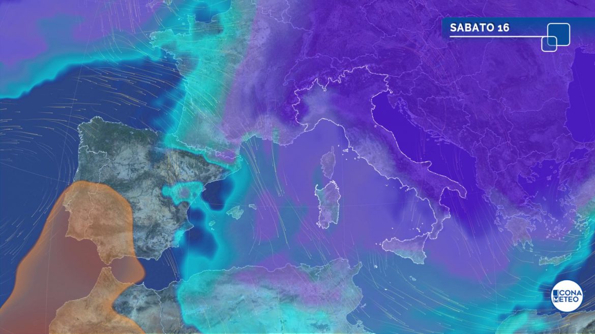 Meteo per sabato: clima rigido in tutto il Paese, con temperature inferiori alla media e freddo accentuato da intensi venti, specie al Centro-Sud
