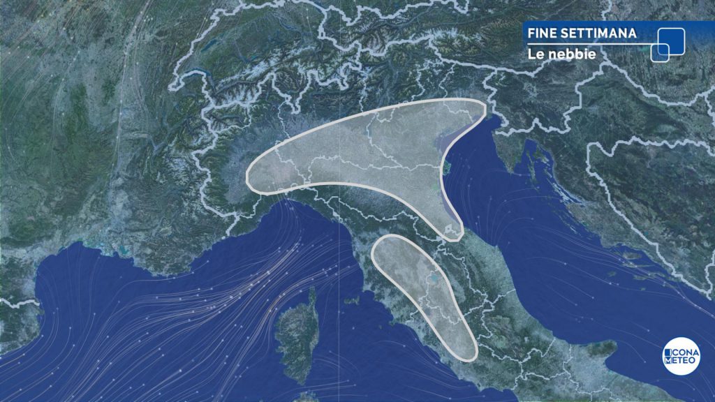 Al mattino e nella successiva notte formazione di nebbie, localmente anche diffuse e fitte, sulla pianura Padana, sulle coste dell’Adriatico settentrionale, specie di Veneto ed Emilia Romagna, nelle valli e sulle pianure interne del Centro; non è escluso qualche banco di nebbia al primo mattino anche sulla Sardegna nordoccidentale. Nel Polesine le nebbie potranno risultare persistenti anche nelle ore centrali della giornata.