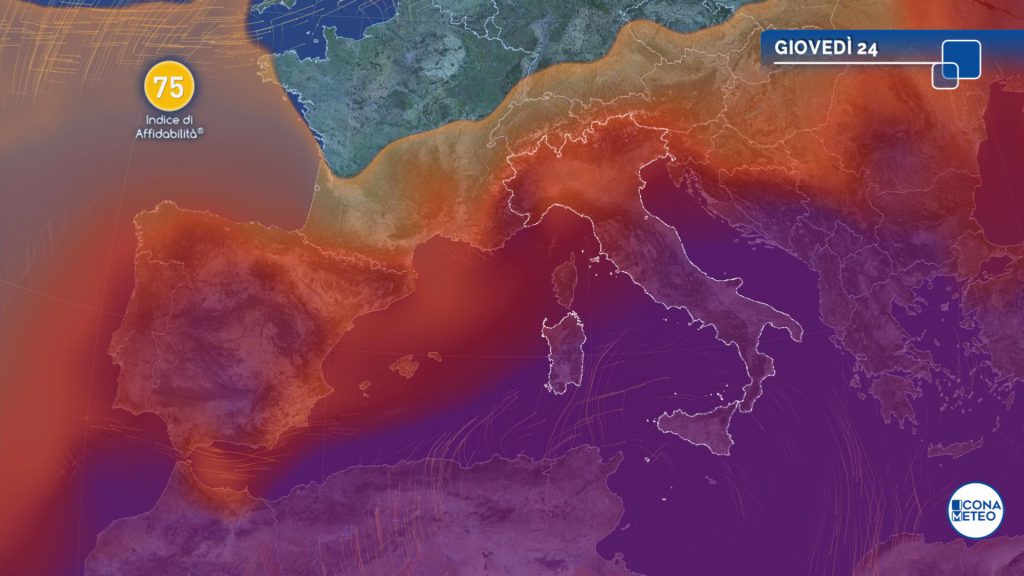 Nel frattempo l’aria di matrice sub-tropicale che l’accompagna sta determinando una graduale intensificazione del caldo su tutto il Paese. Nel fine settimana, infatti, la rimonta nord africana sarà più incisiva. Il tempo diverrà stabile quasi ovunque, ad eccezione delle aree alpine dove persisterà la tendenza a locali temporali di calore. Le temperature aumenteranno notevolmente, con valori che potranno diffusamente raggiungere e localmente superare la soglia dei 35 gradi, mentre sulla Sardegna si potranno persino toccare i 40-42 gradi. All’inizio della settimana si conferma un’attenuazione della fiammata africana al Nord, sulla Sardegna e su parte del Centro. Al Sud e sulla Sicilia invece il clima resterà rovente, con una prosecuzione dell’ondata di calore (la prima della stagione) almeno fino a giovedì 24, ma forse anche oltre.