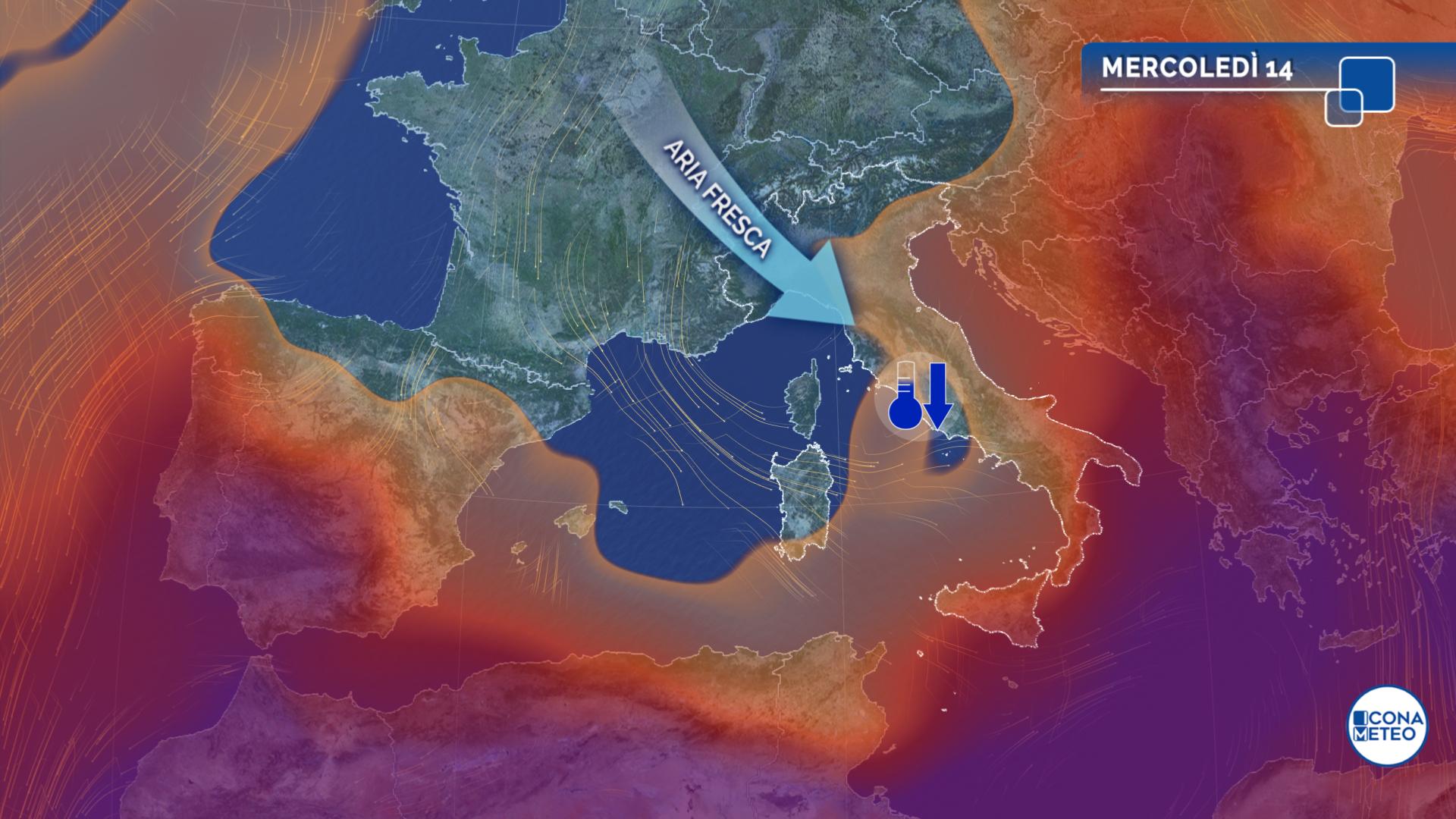 Temperature: in calo anche sensibile su buona parte del Paese; clima relativamente fresco al Nord, in Toscana e sulla Sardegna, caldo ancora intenso sulla Sicilia meridionale e sulle aree ioniche del Sud.