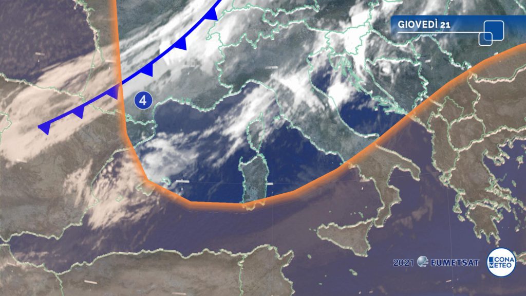 Sulle regioni settentrionali tendenza a un miglioramento del tempo, con le ultime isolate precipitazioni sul Friuli