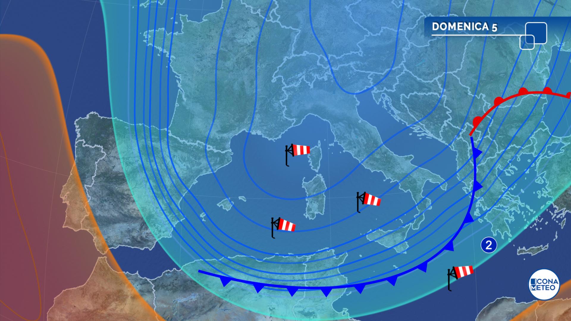 Previsioni per domani, domenica 5 dicembre: temporali al Centro-Sud e piogge persistenti in Friuli Venezia Giulia; quota neve in calo sull’Appennino centrale e settentrionale. Venti intensi