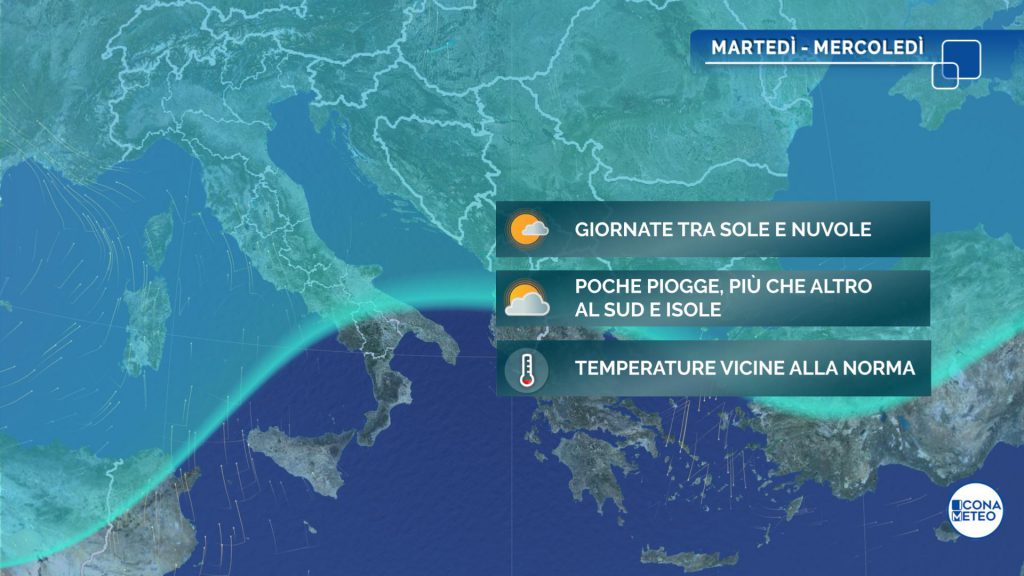 Scena meteo con alcune PIOGGE e più SOLE al Centro-Nord: i dettagli