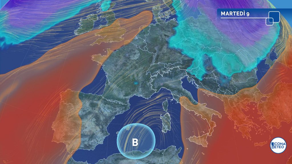 VORTICE CICLONICO in azione e rischio TEMPORALI. Clima molto MITE al Sud