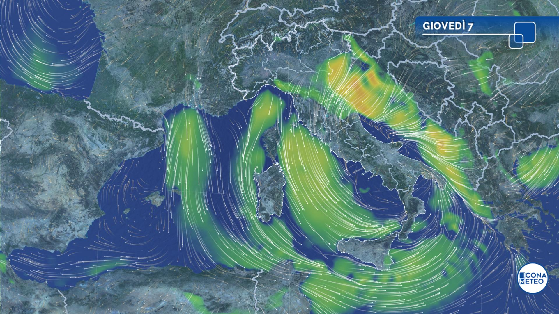 Vortice CICLONICO sull’Italia: forti VENTI e piogge intense