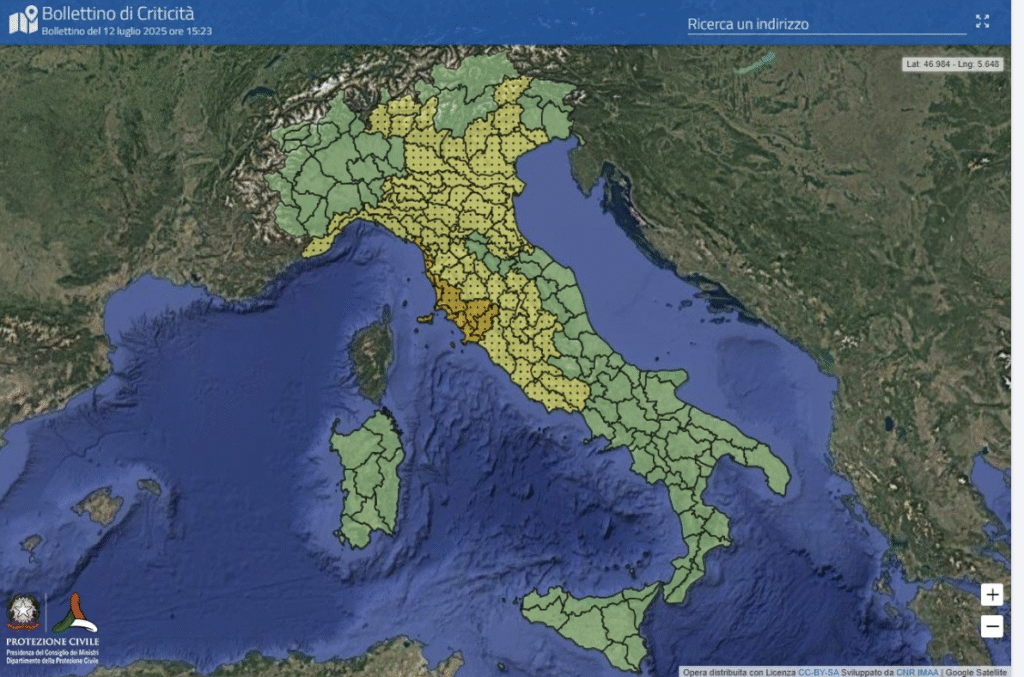 Il nostro Paese è interessato da una veloce perturbazione in arrivo dalla Spagna, la quarta del mese, che sta attraversando il Paese provocando una fase di instabilità atmosferica e un temporaneo calo termico soprattutto sulle regioni del Centro-Nord e sulla Sardegna. Sono attesi rovesci e temporali anche di forte intensità, mentre al Sud e sulle Isole maggiori il tempo si mantiene prevalentemente stabile e più caldo. Per oggi la Protezione Civile ha diramato un’allerta arancione su settori della Toscana, gialla meteo-idro in sette regioni.