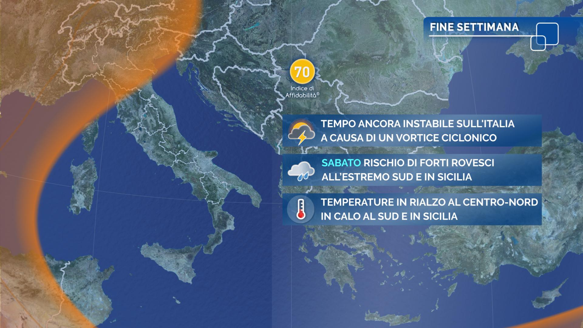 Al via una fase di maltempo sull’Italia per l’azione congiunta di una perturbazione atlantica in avvicinamento dalla Francia e diretta verso le regioni del Nord ((la n.2) e l’altra associata ad un’intensa circolazione di bassa pressione formatasi a sud della Sardegna (la n.3). Tempo in peggioramento già da questo giovedì 5 maggio, in particolare al Centro-Nord mentre sulle Isole si intensificano i venti di Scirocco con un notevole rialzo termico sulla Sicilia, dove non si escludono picchi superiori ai 25 gradi. Il contesto meteo rimarrà sostanzialmente instabile anche venerdì e nel fine settimana quando ad essere coinvolte dalle precipitazioni saranno soprattutto le regioni meridionali.