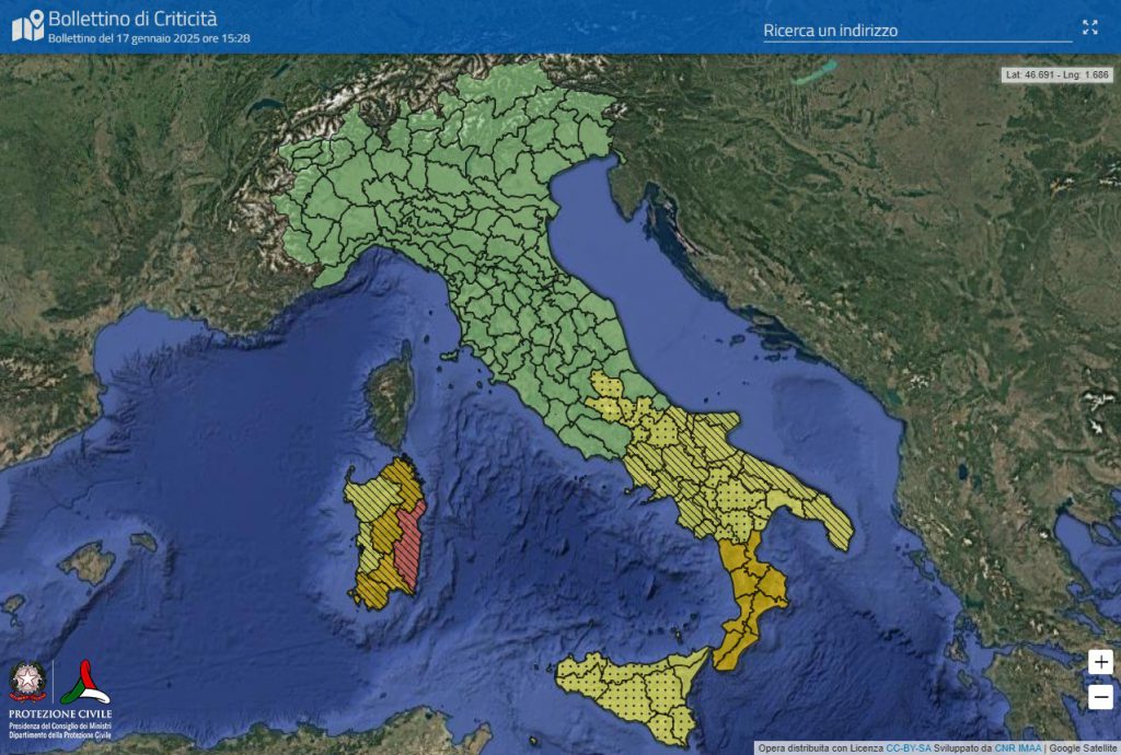 Ora l’attenzione si sposta dunque sulla Sardegna, dove oggi vige un’allerta rossa meteo-idro. Allerta arancione in Calabria e parte di Sardegna, gialla in 7 regioni.