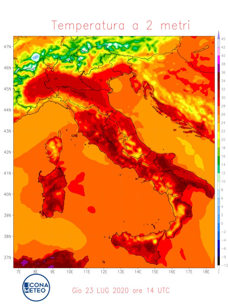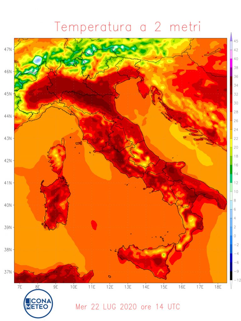 Nella giornata di giovedì, invece, il caldo allenterà leggermente la presa sulle regioni del Nord, grazie all’arrivo della coda di una perturbazione che innescherà mercoledì sera-notte un primo passaggio temporalesco, a cui ne seguirà un secondo nella giornata di giovedì. Nel frattempo al Sud e in Sardegna, in particolare, le temperature tenderanno ad aumentare ancora un po’, con punte intorno ai 35-36 gradi e fino a sfiorare localmente i 37 gradi, specie nel Tavoliere delle Puglie.