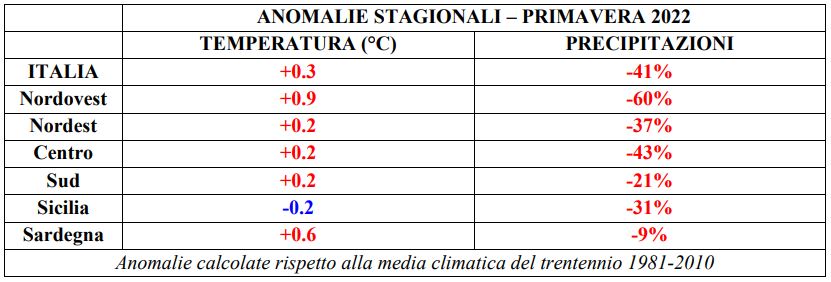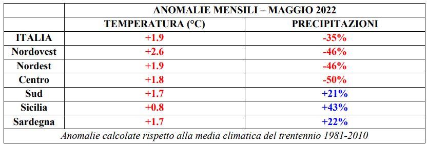 Ecco tutti i dati relativi al clima registrato in Italia nel mese di maggio, durante la primavera e dall’inizio del 2022: