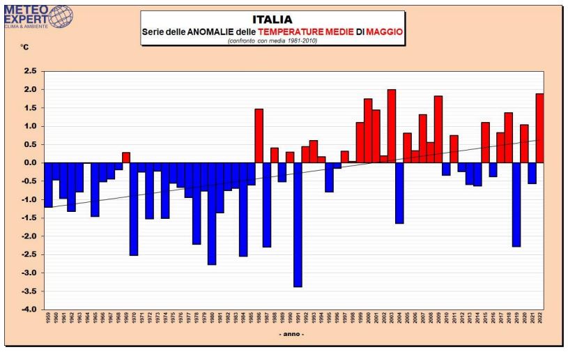 Clima Italia, maggio 2022 al secondo posto tra i più caldi mai registrati