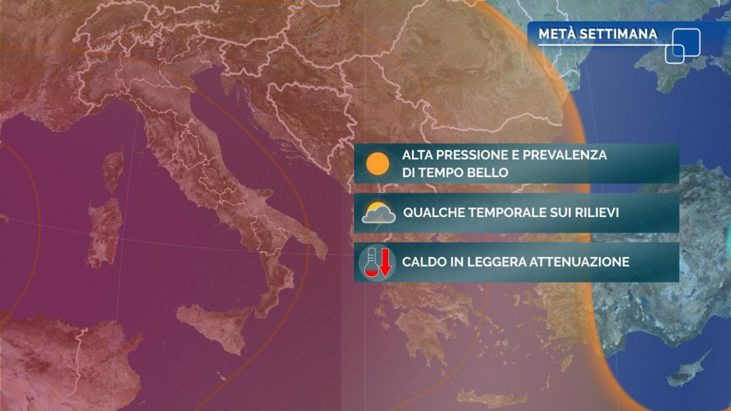 L’alta pressione di matrice nord-africana si sta allungando infatti ben oltre l’area mediterranea fino al Baltico meridionale. Lungo il suo margine orientale – affermano i meteorologi di Meteo Expert – un fronte freddo è in discesa verso i Balcani. La sua influenza sull’Italia sarà decisamente marginale con locali episodi di instabilità oggi al Nord (principalmente a ridosso dei rilievi) e una breve fase di venti orientali o settentrionali in Val Padana, sull’Adriatico e parte del Sud dove temporaneamente affluisce aria un poco meno calda. Il caldo anomalo (specie sulle regioni centro-settentrionali) è destinato di nuovo ad accentuarsi sensibilmente tra venerdì e domenica. L’alta pressione potrebbe indebolirsi al Nord all’inizio della prossima settimana.