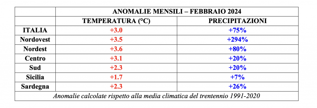 È stato un febbraio eccezionale dal punto di vista delle temperature che sono rimaste costantemente e sensibilmente sopra la media, tanto da elevarlo al primo posto fra i più caldi, con la considerevole anomalia di +3°C rispetto alla media del trentennio 1991-2020.